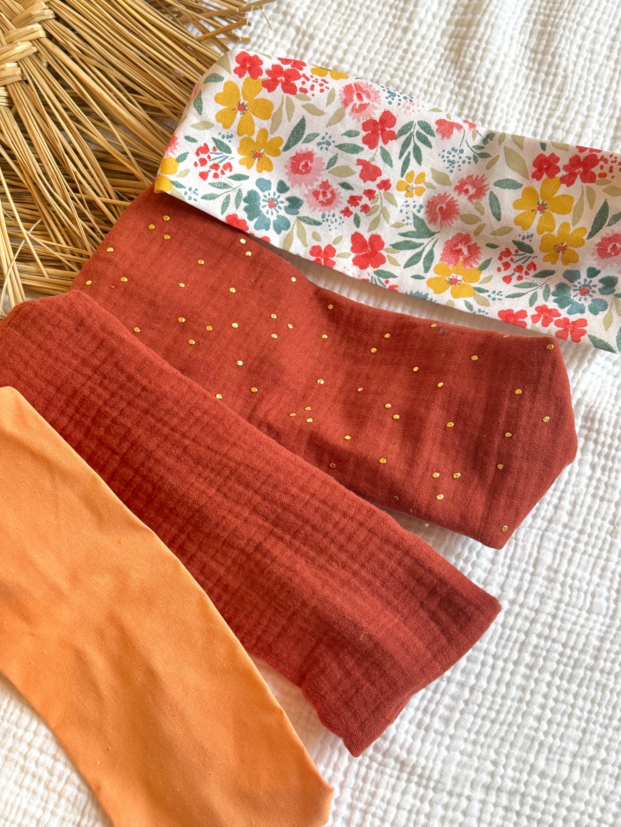 Bandeau adulte Margot Corail / Terracota / Fleuri paquerette
