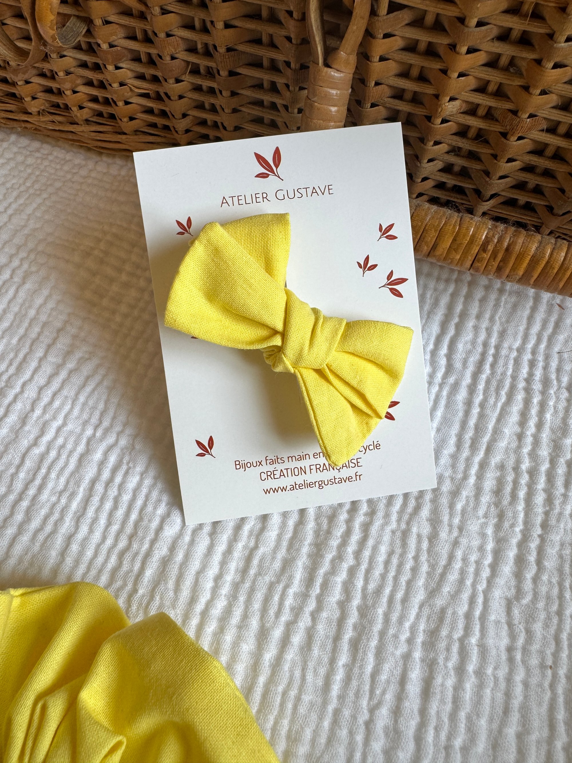 Barrette bébé/fille noeud Léontine Jaune