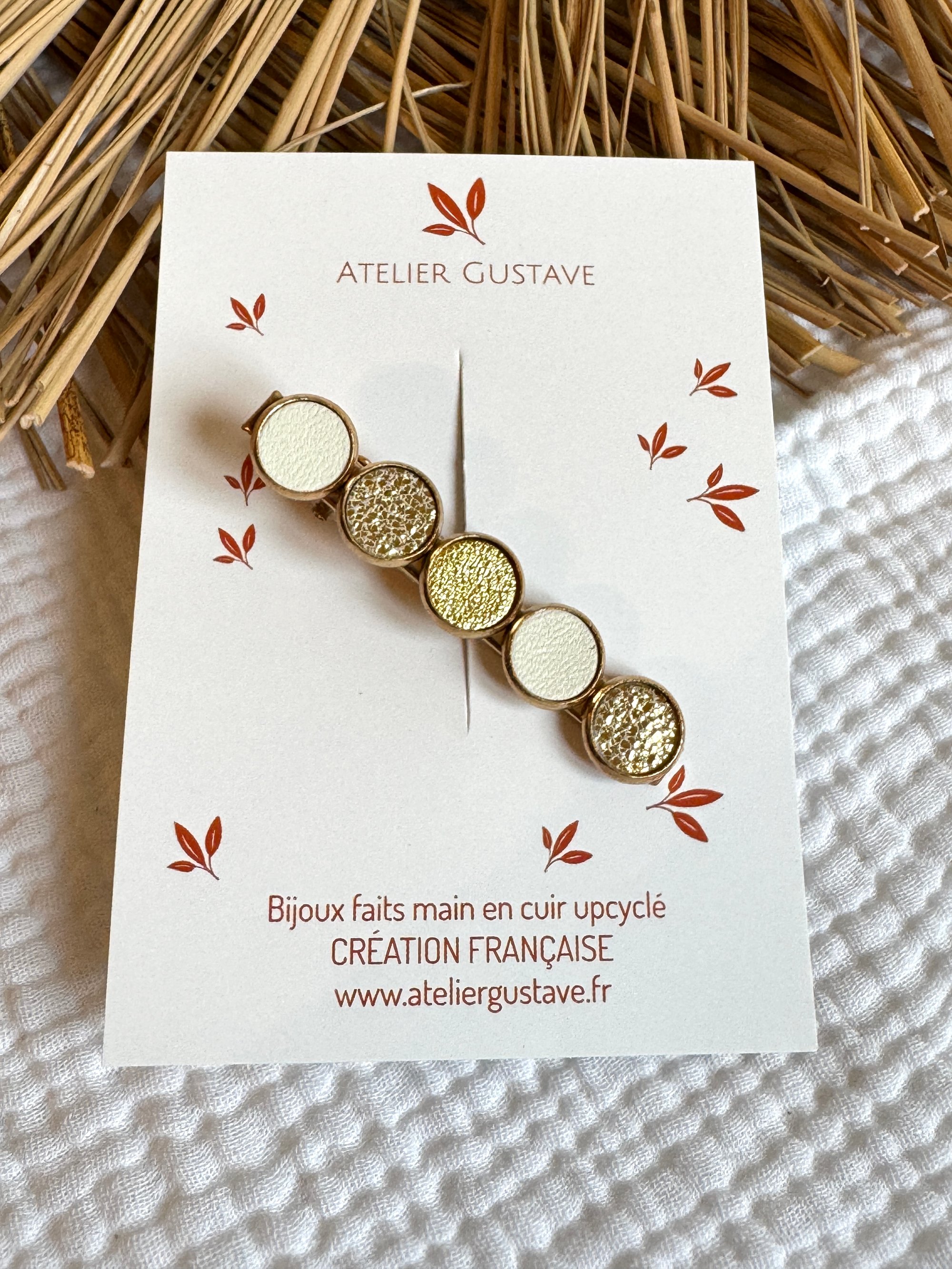 ♡ barrette crocodile antiglisse avec des petits ronds de cuir dans un joli camaieu
