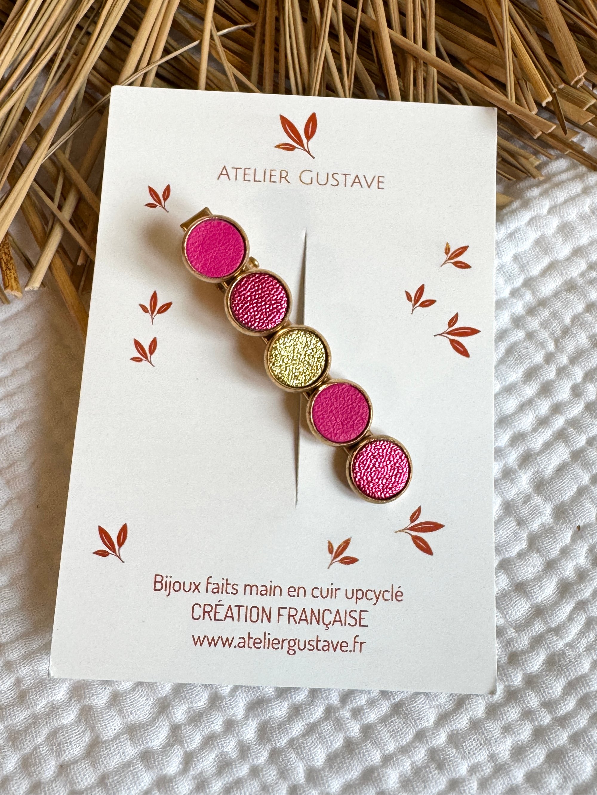 ♡ barrette crocodile antiglisse avec des petits ronds de cuir dans un joli camaieu