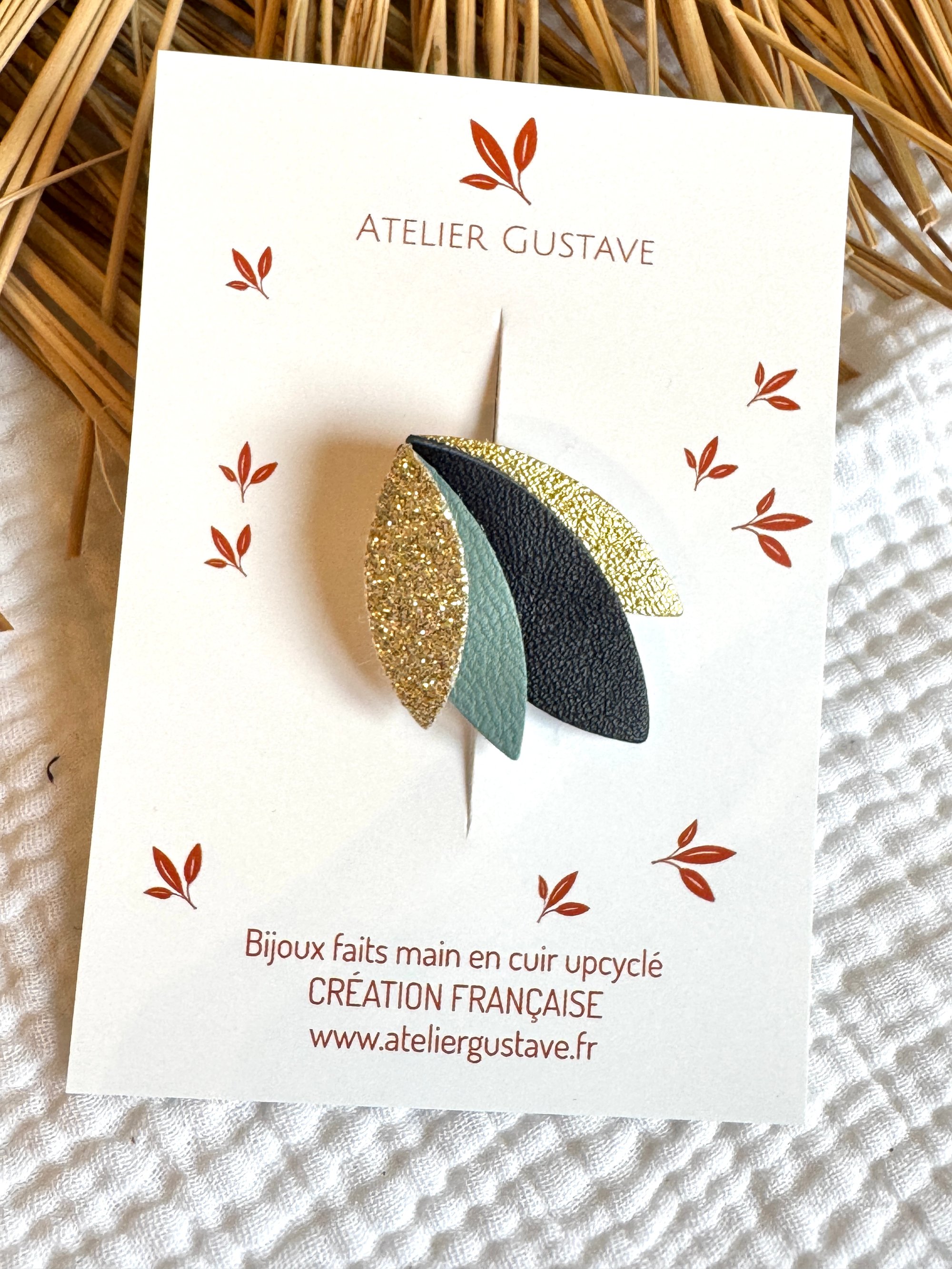 ♡ barrette antiglisse avec des pétales de cuir dans un joli camaieu