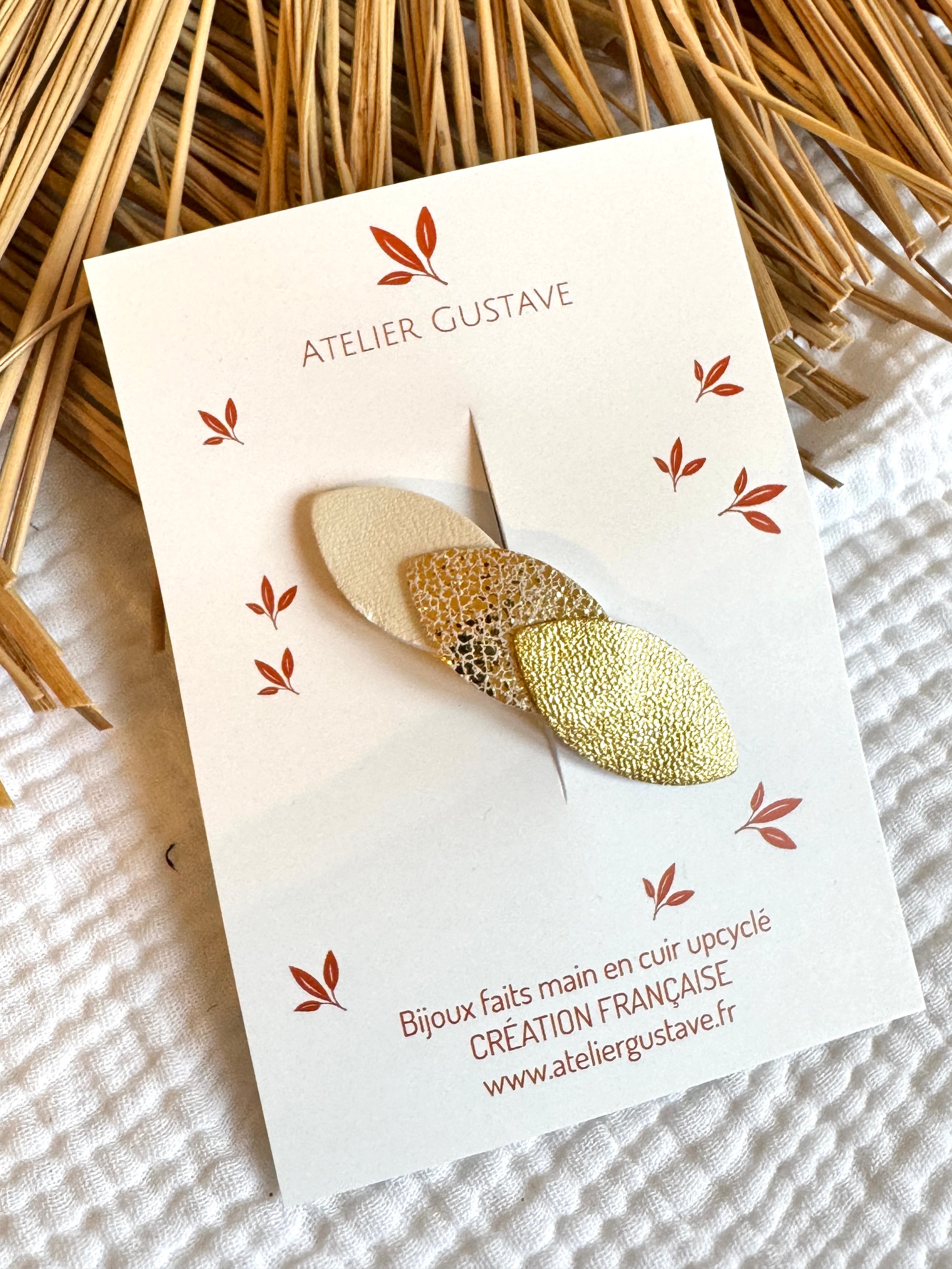 ♡ barrette clic clac avec des pétales de cuir dans un joli camaieu