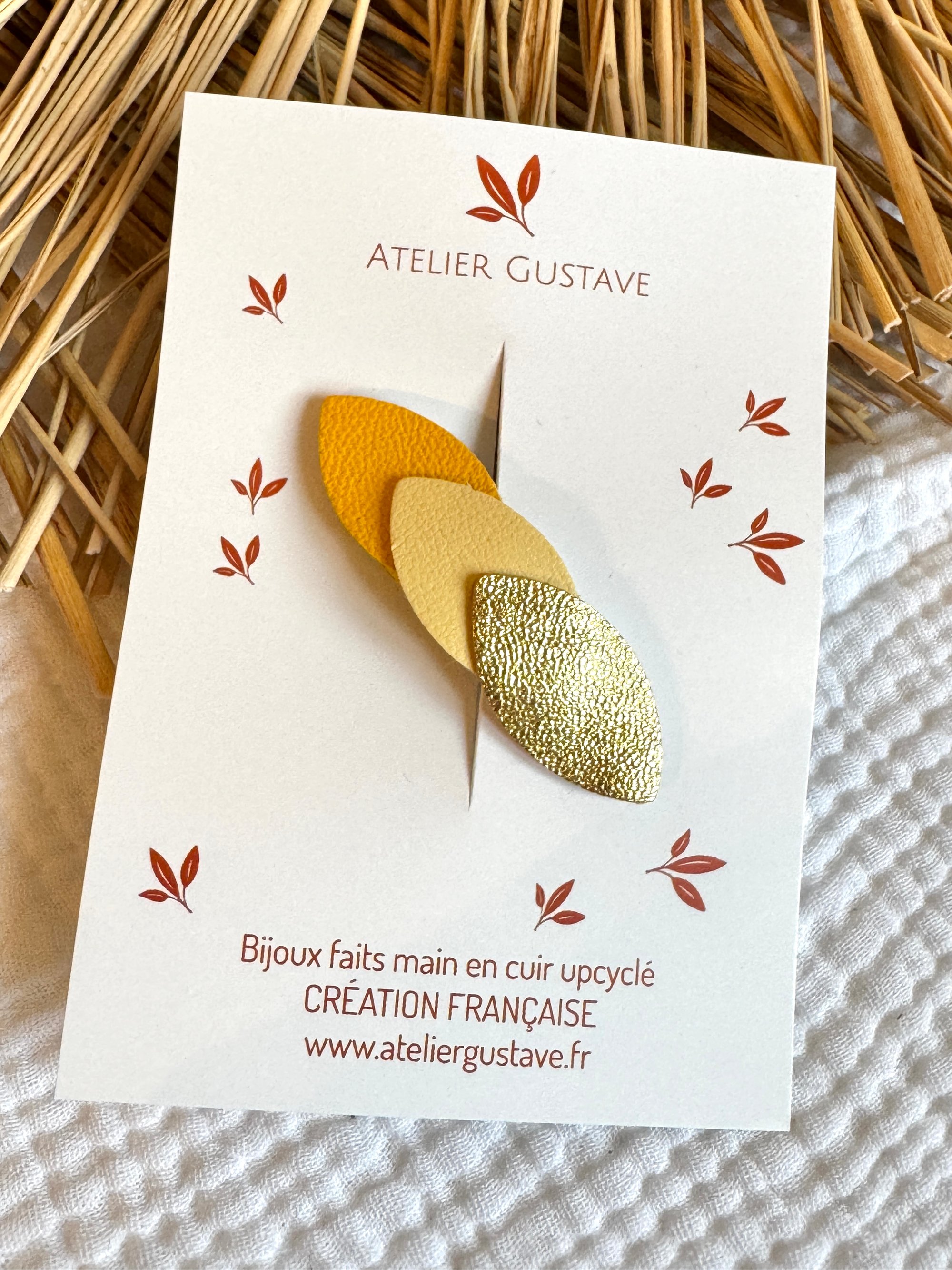♡ barrette clic clac avec des pétales de cuir dans un joli camaieu