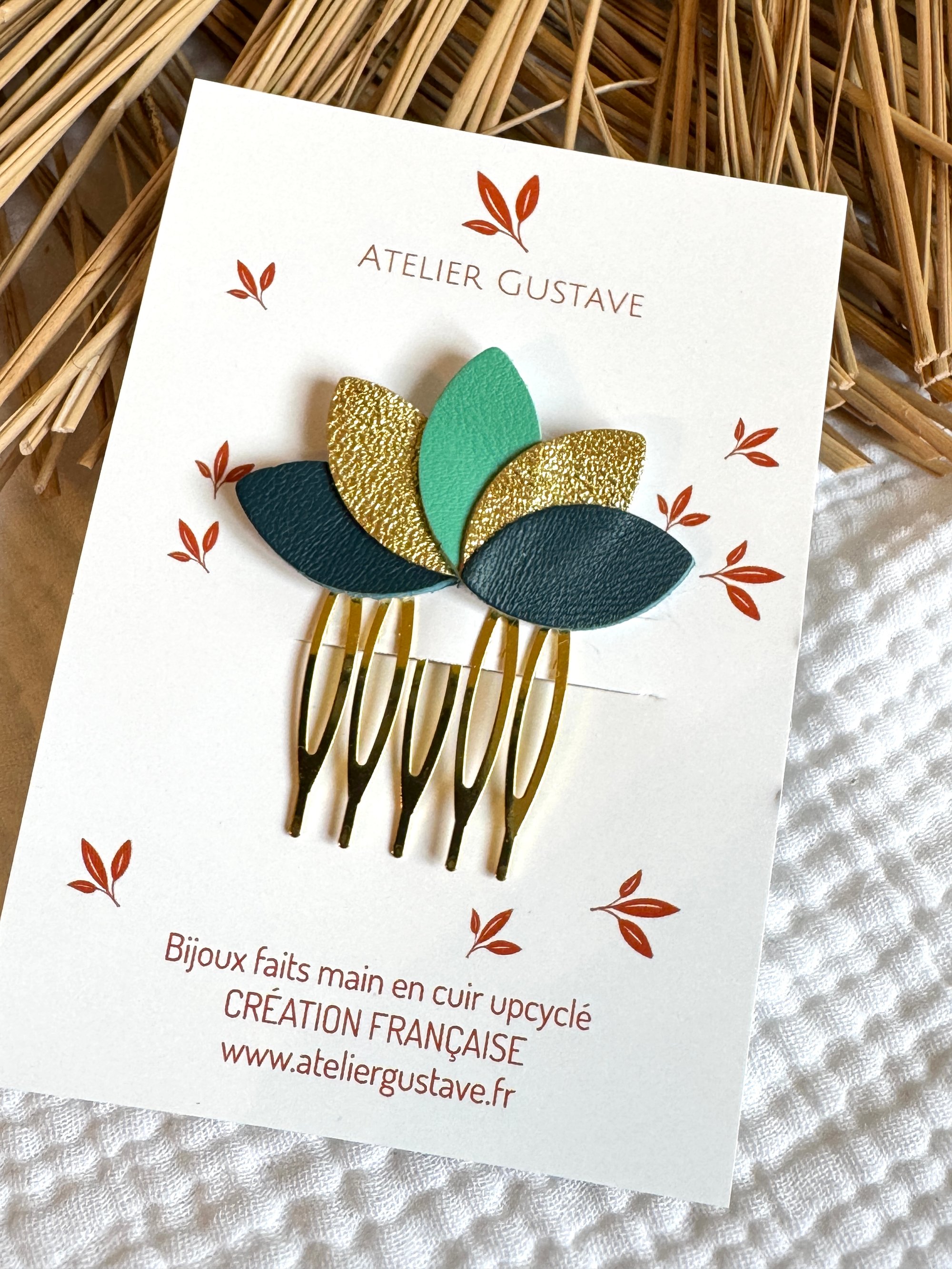 ♡ barrette peigne antiglisse avec ses pétales délicats de cuir dans un joli camaieu