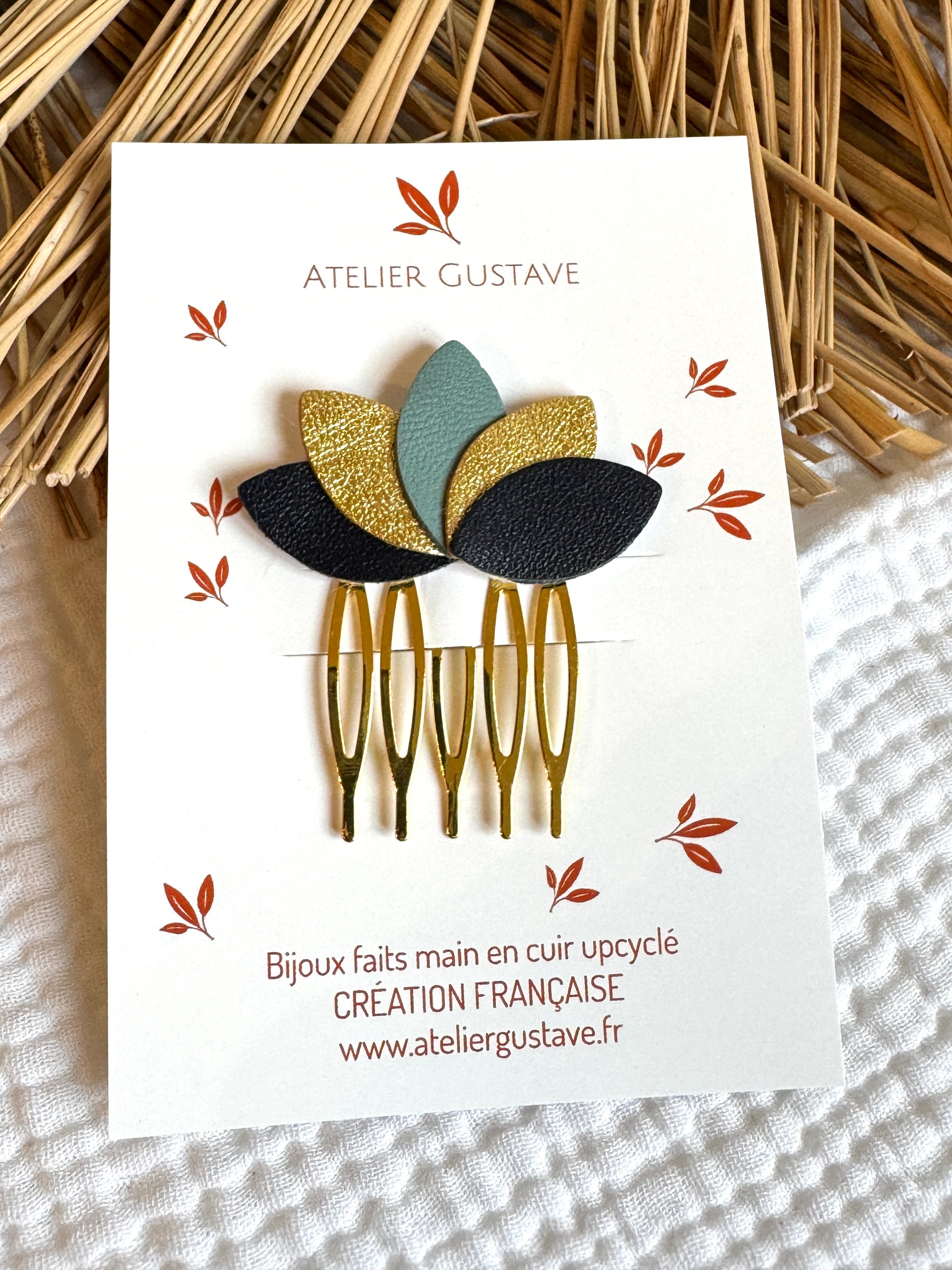 ♡ barrette peigne antiglisse avec ses pétales délicats de cuir dans un joli camaieu