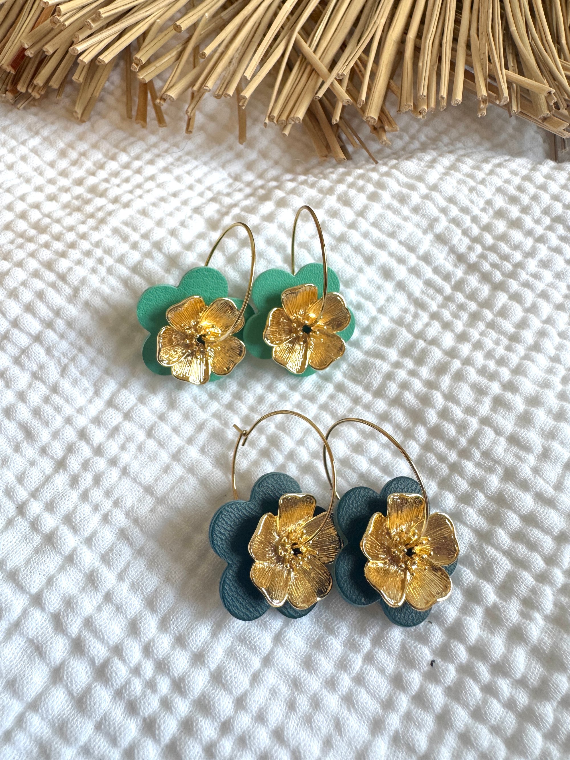 - Pièces de cuir de luxe et créoles en acier inoxydable doré à l'or fin