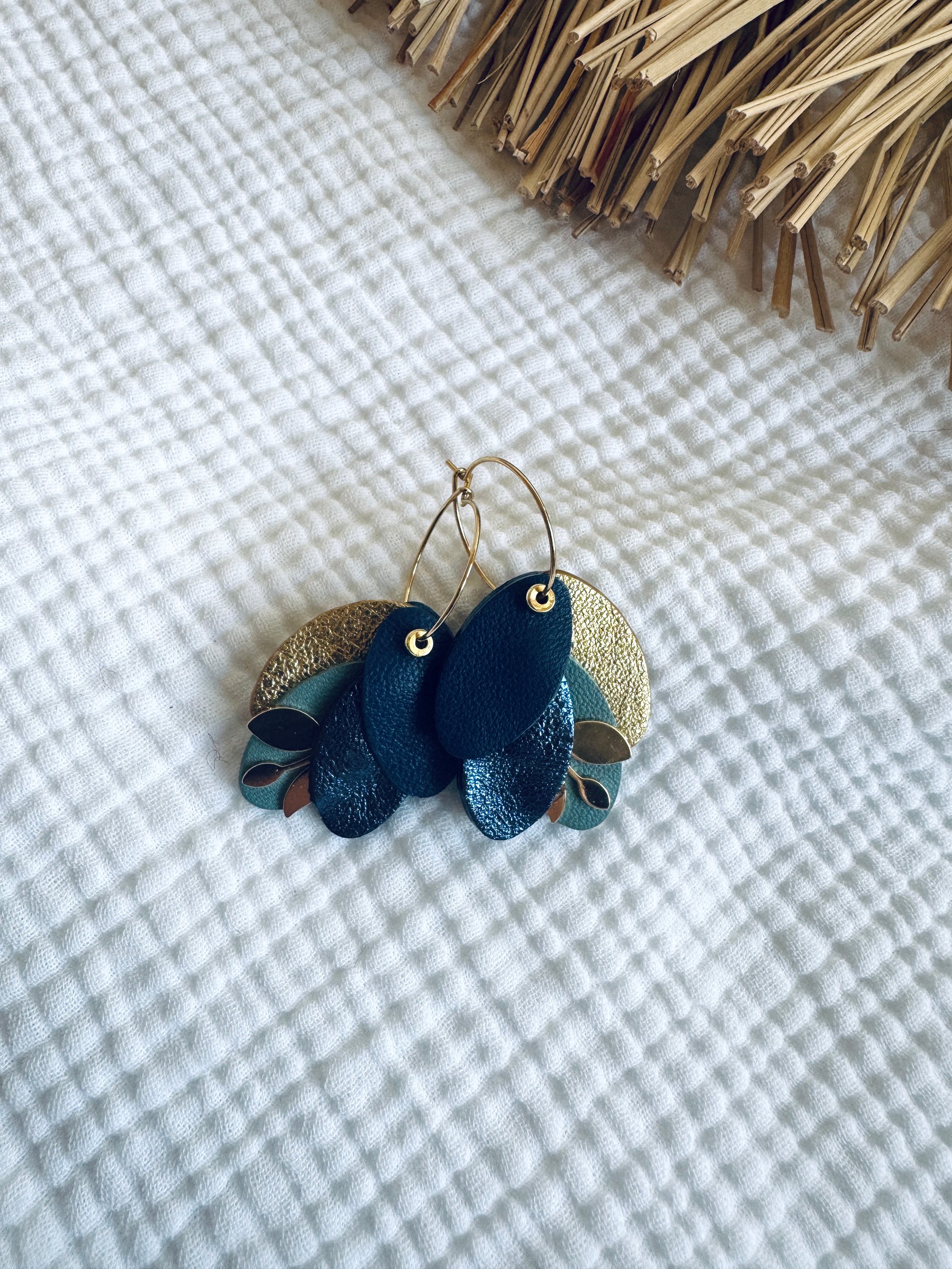 ♡ Boucles créoles florales dans un joli camaieu de cuir