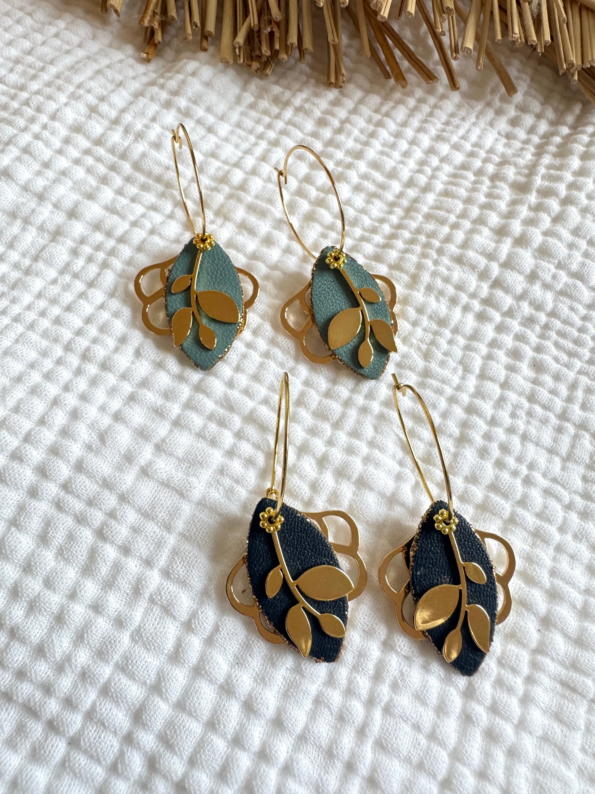 - Pièces de cuir de luxe et créoles en acier inoxydable doré à l'or fin