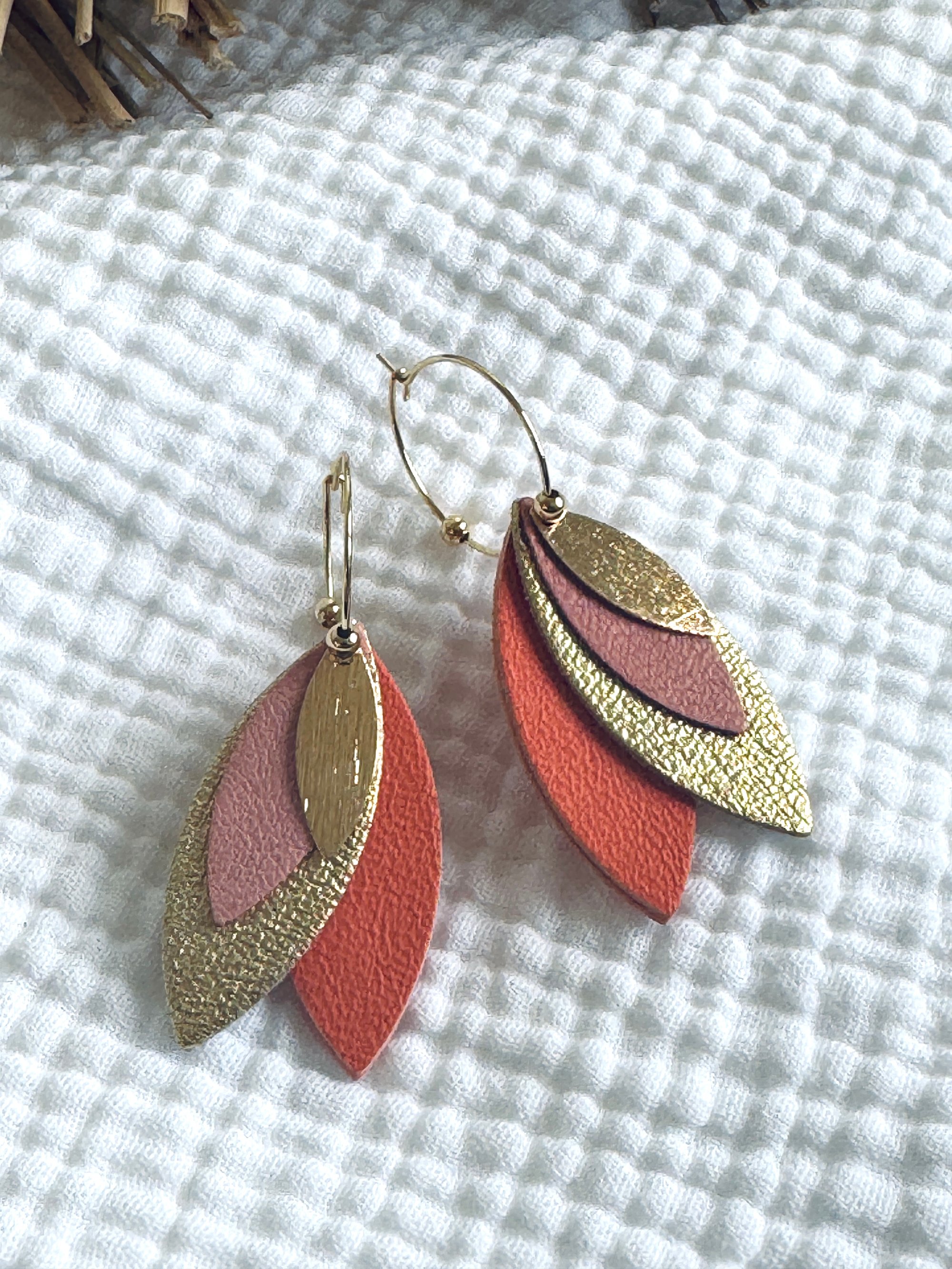 - Pièces de cuir de luxe et créoles en acier inoxydable doré à l'or fin