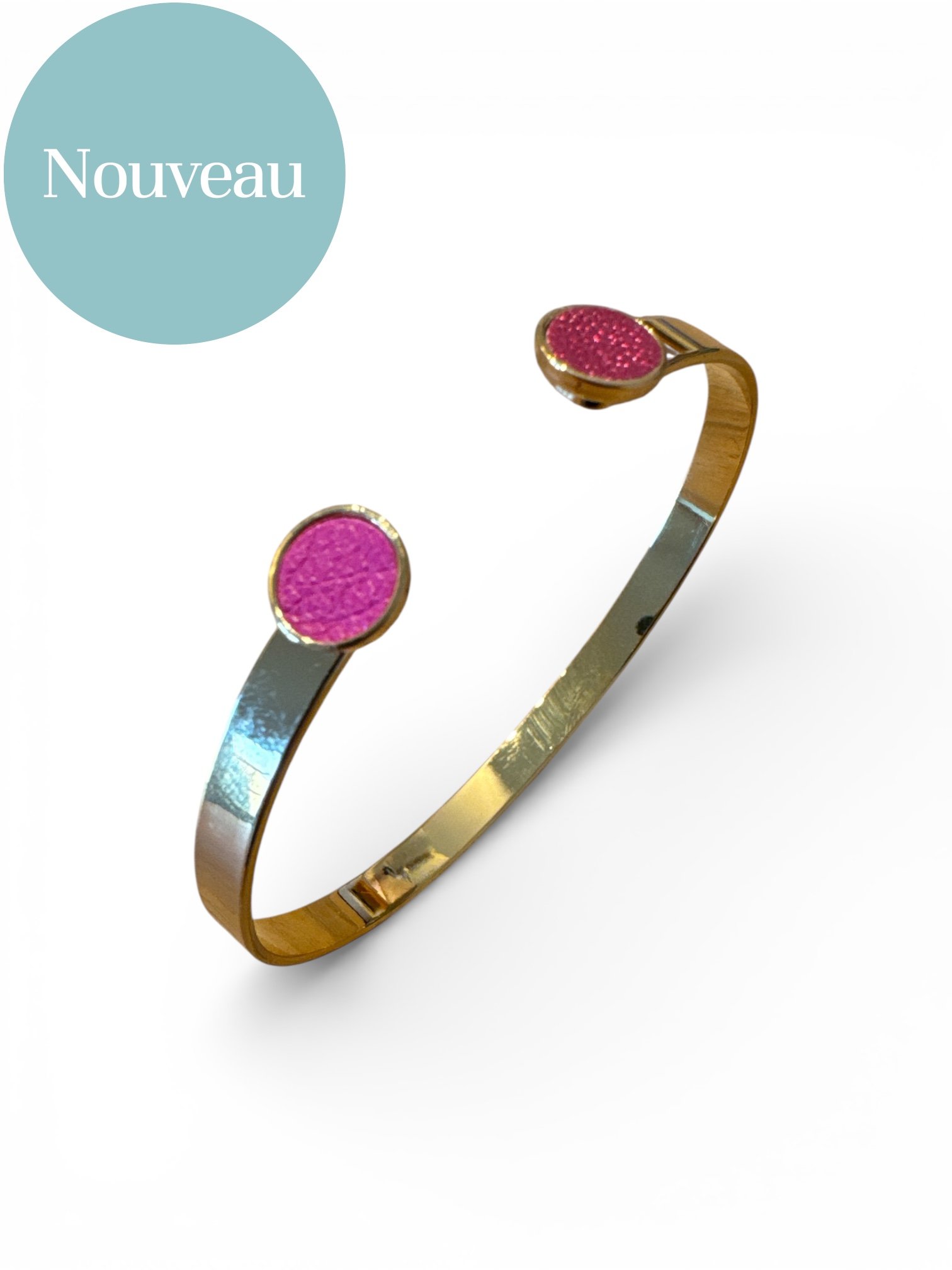 ♡ Un mélange subtil de cuirs coordonnés pour un bracelet jonc réglable facile à porter au quotidien, rose vif et rose vif metallisé