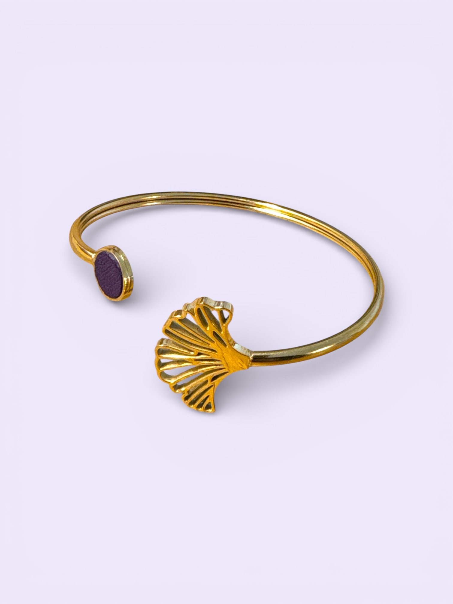♡ Puce de cuir et fleur lotus pour un bracelet jonc réglable facile à porter au quotidien