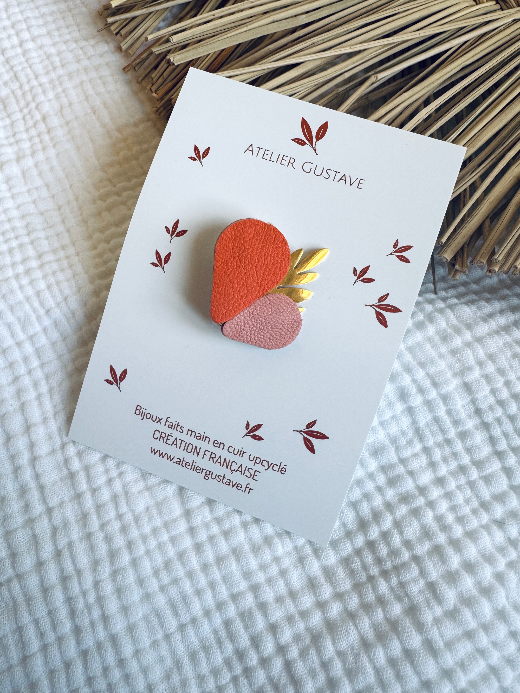 ♡ Une jolie feuille en métal doré et du cuir de luxe pour cette jolie broche dans un esprit nature …