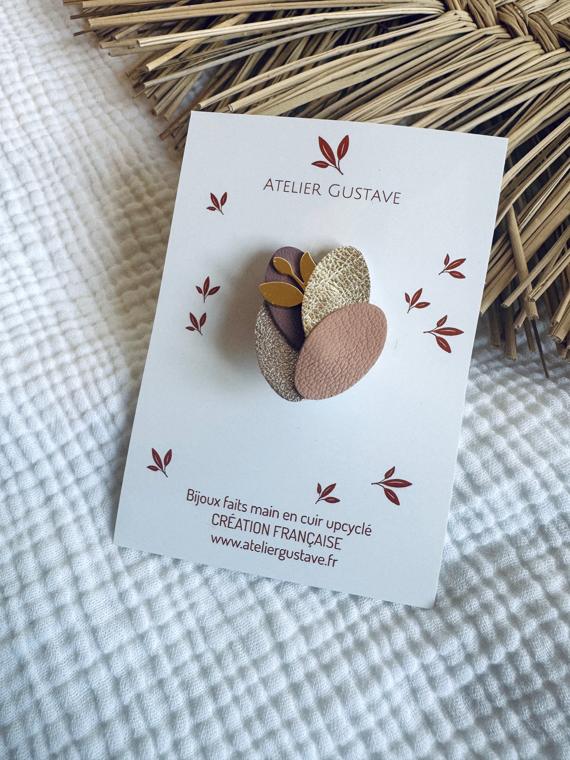 ♡ Une jolie feuille en métal doré et du cuir de luxe pour cette jolie broche dans un esprit nature …