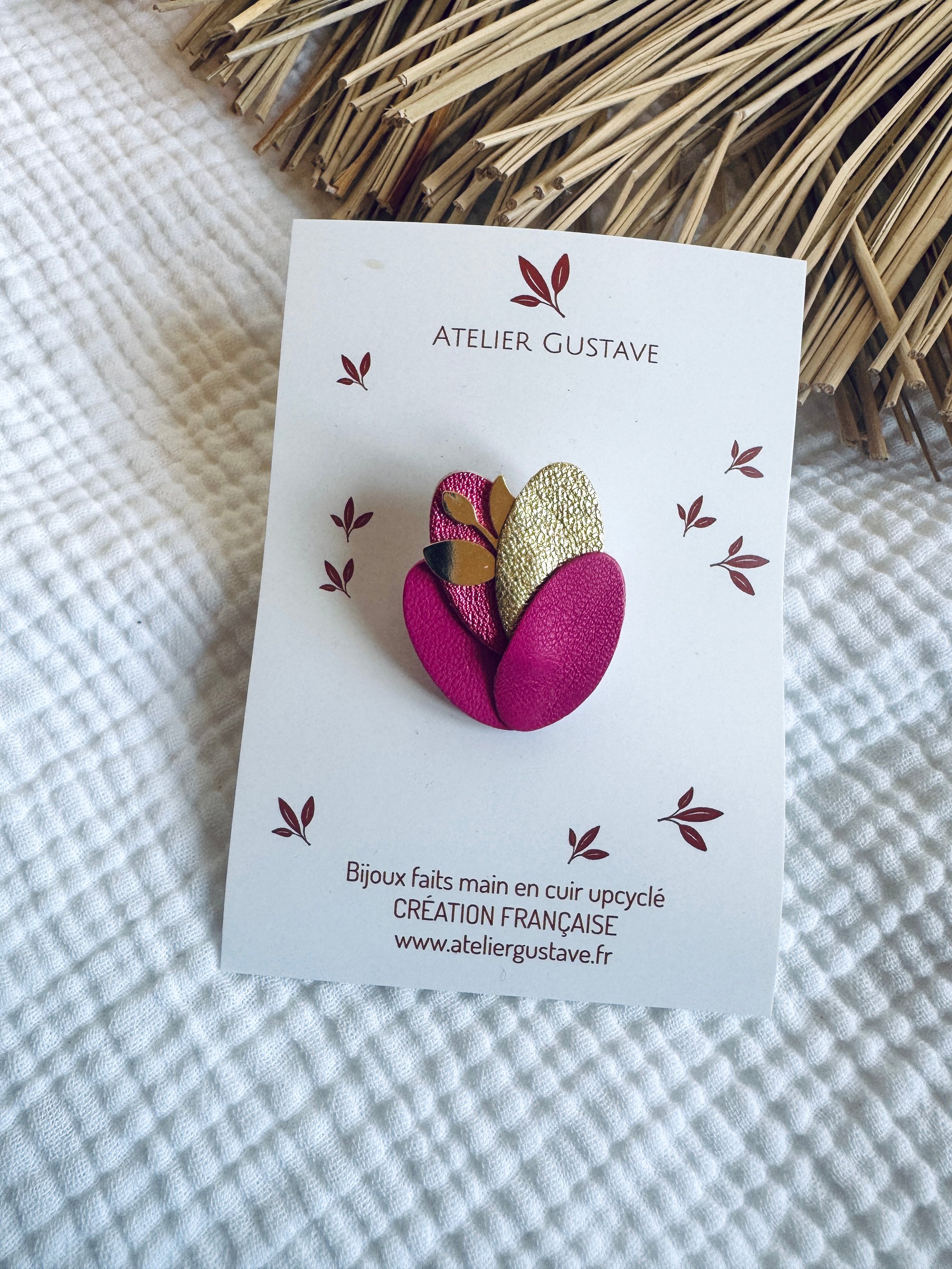 ♡ Une jolie feuille en métal doré et du cuir de luxe pour cette jolie broche dans un esprit nature …
