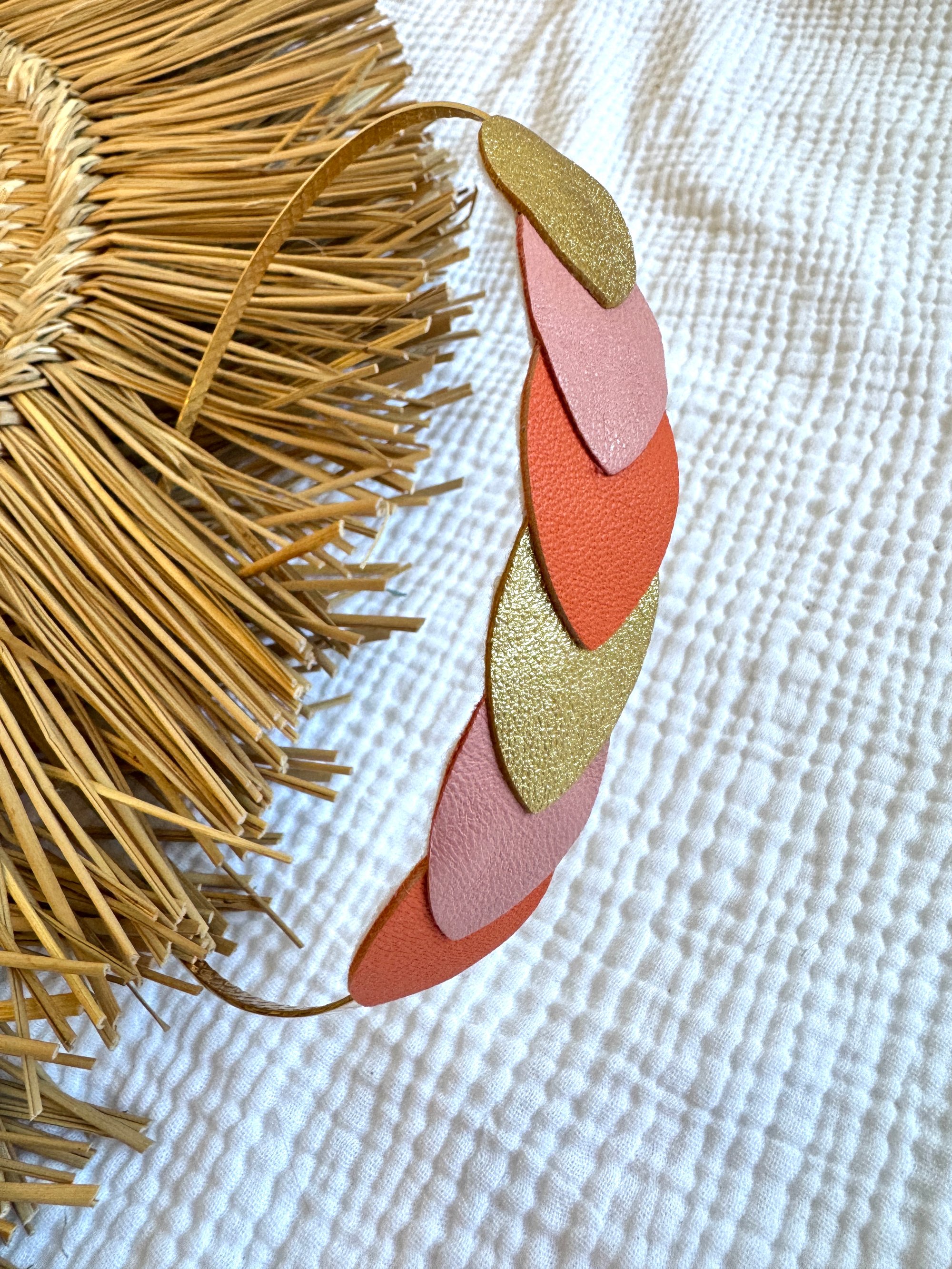 ♡ serre-tête avec des pétales de cuir dans un joli camaieu