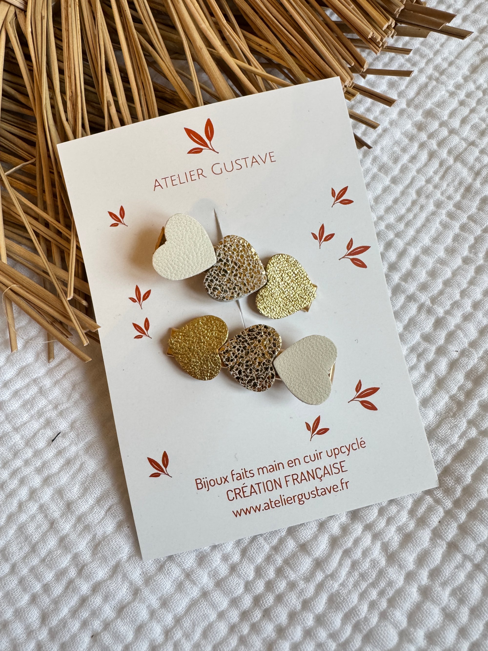 ♡ barrette antiglisse avec des pétales de cuir cœur dans un joli camaieu