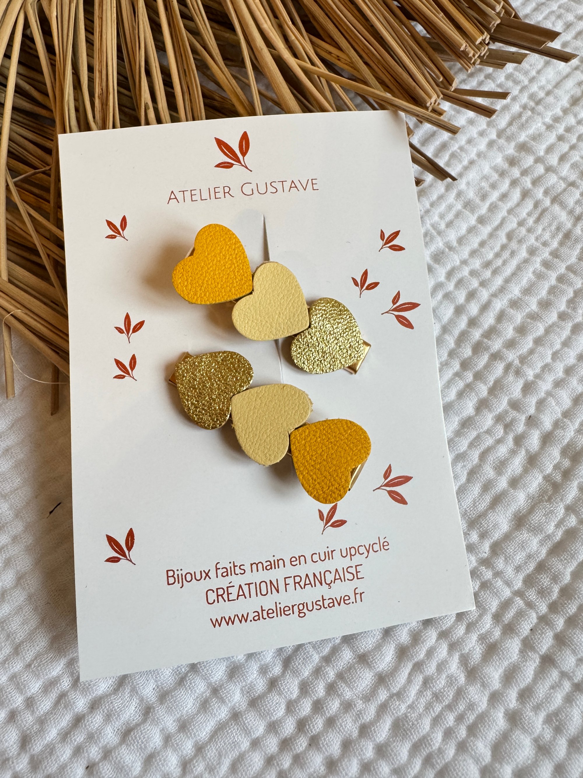 ♡ barrette antiglisse avec des pétales de cuir cœur dans un joli camaieu