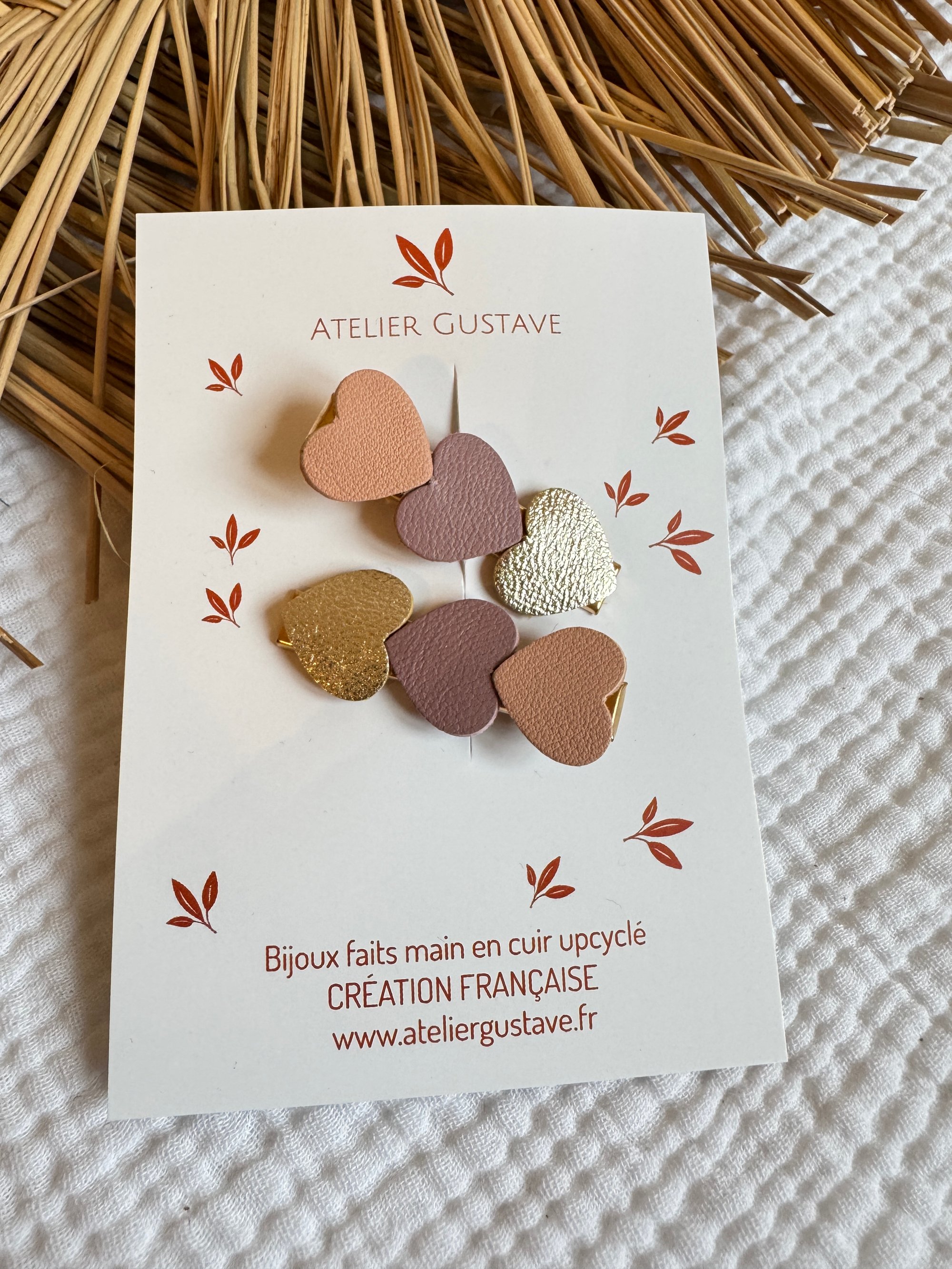♡ barrette antiglisse avec des pétales de cuir cœur dans un joli camaieu