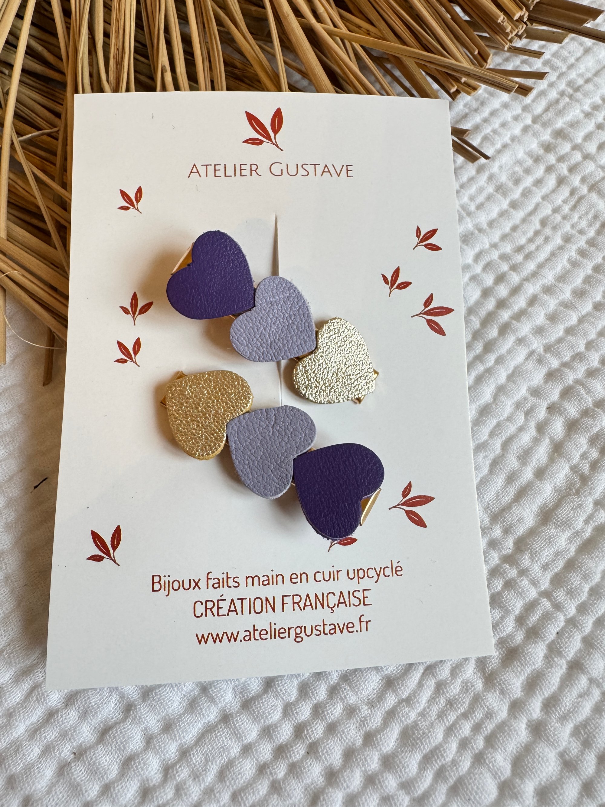♡ barrette antiglisse avec des pétales de cuir cœur dans un joli camaieu