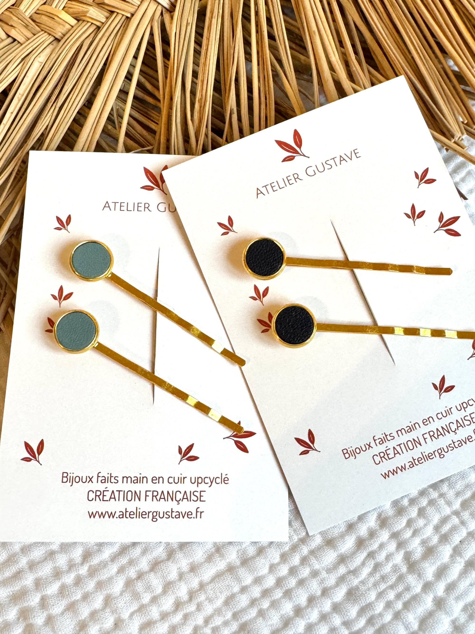 - Dimensions : cuir 1 cm x 1 cm, longueur totale barrette 5,5 cm