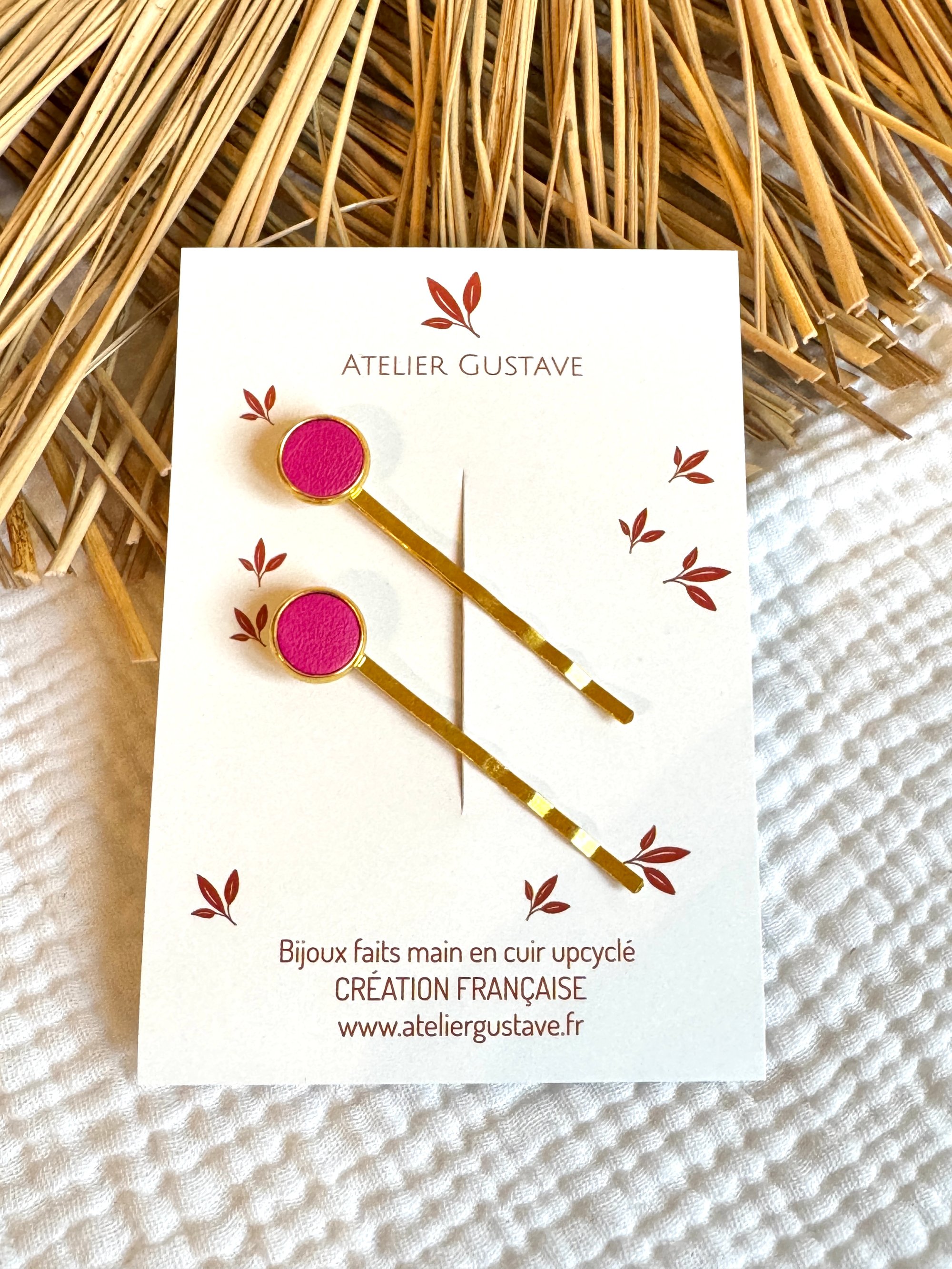 - Dimensions : cuir 1 cm x 1 cm, longueur totale barrette 5,5 cm