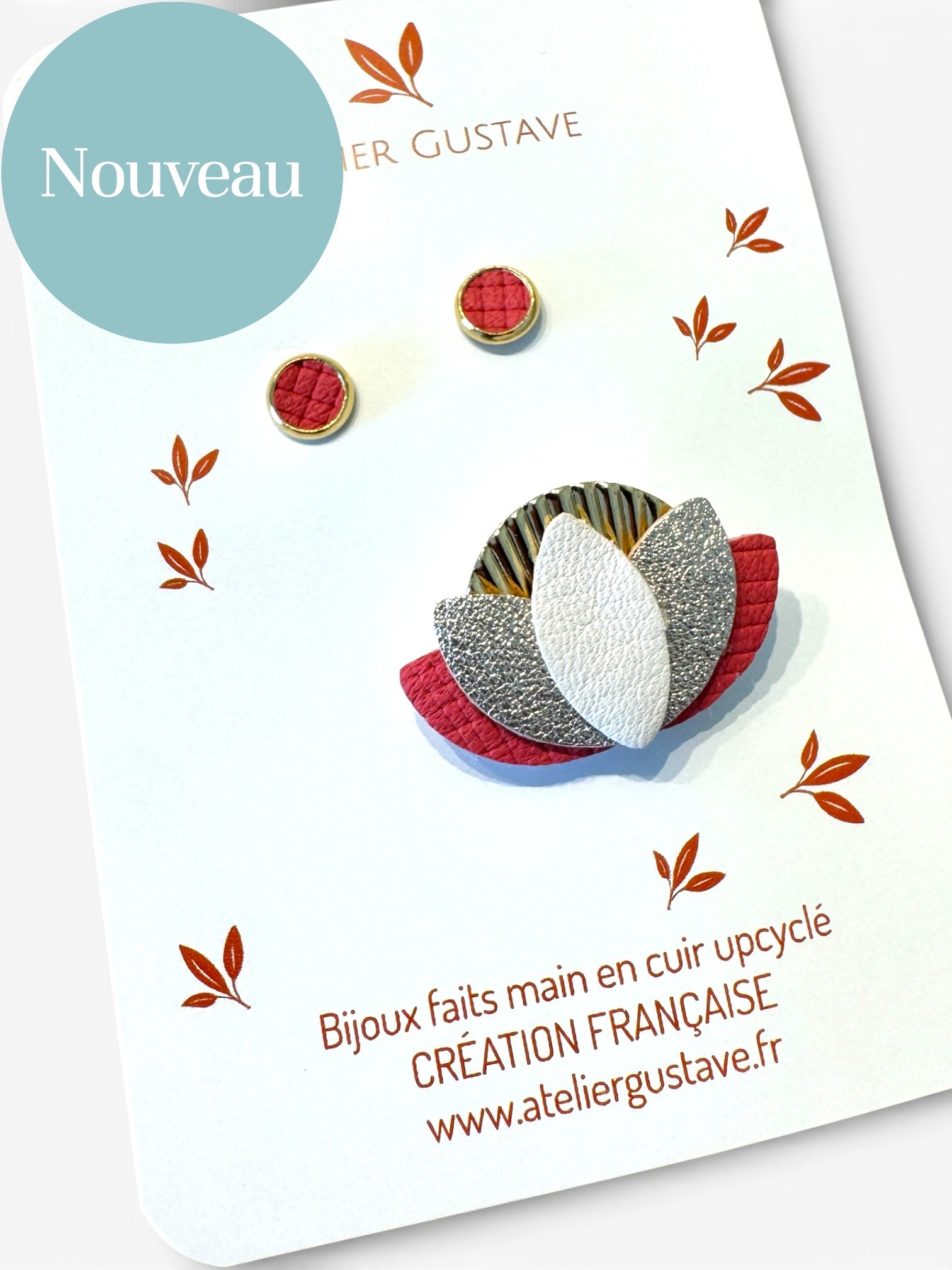 - Pièces de cuir de luxe et puces en acier inoxydable , broche dos feutrine