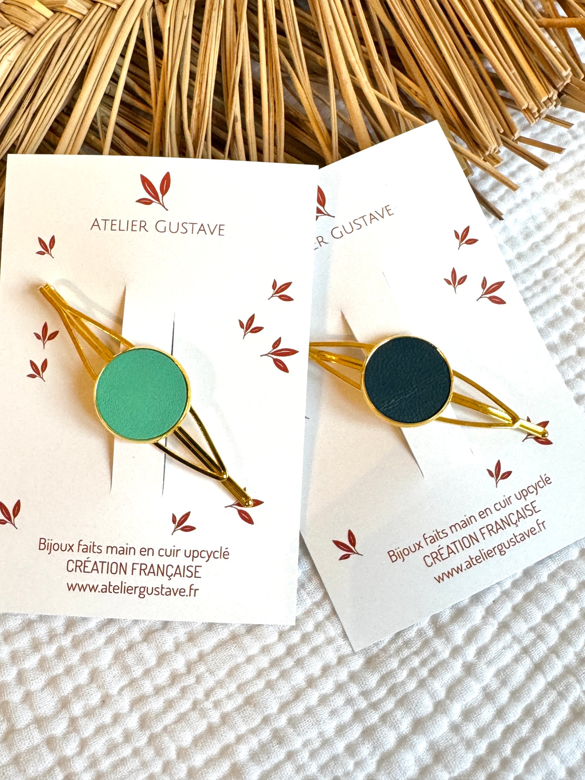 - Dimensions : cuir 2 cm x 2 cm, longueur totale barrette 7 cm
