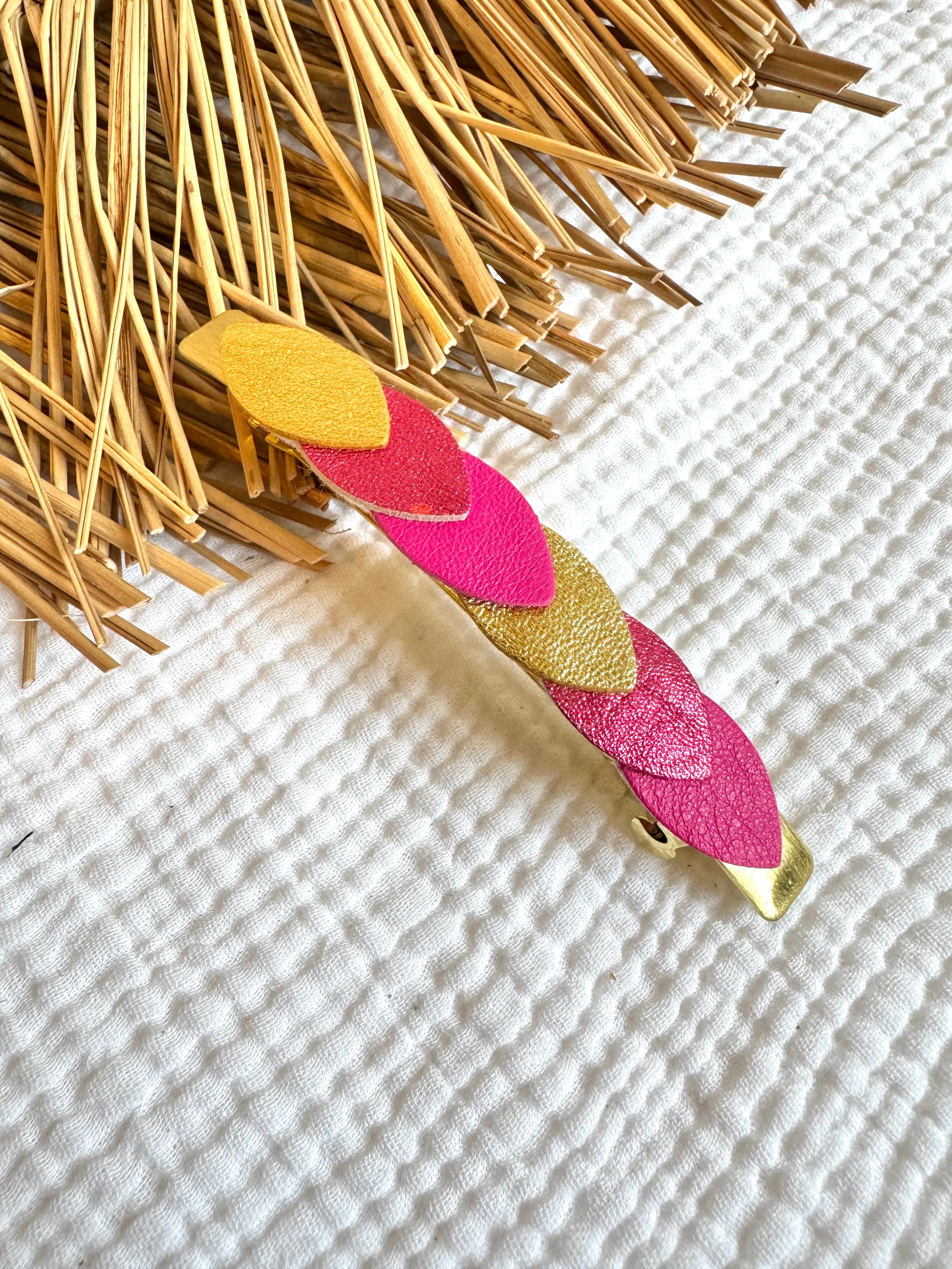 ♡ grande barrette queue de cheval avec des pétales de cuir dans un joli camaieu