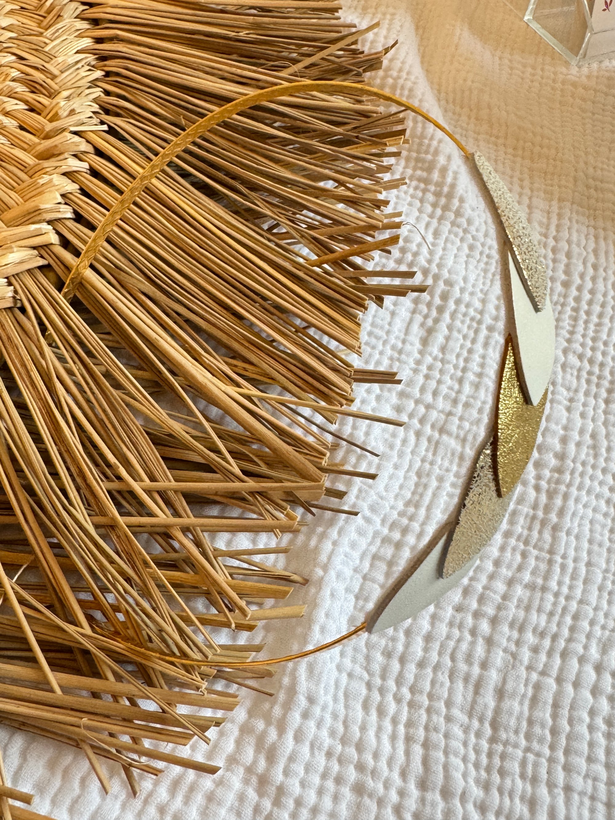 ♡ serre-tête avec des pétales de cuir dans un joli camaieu