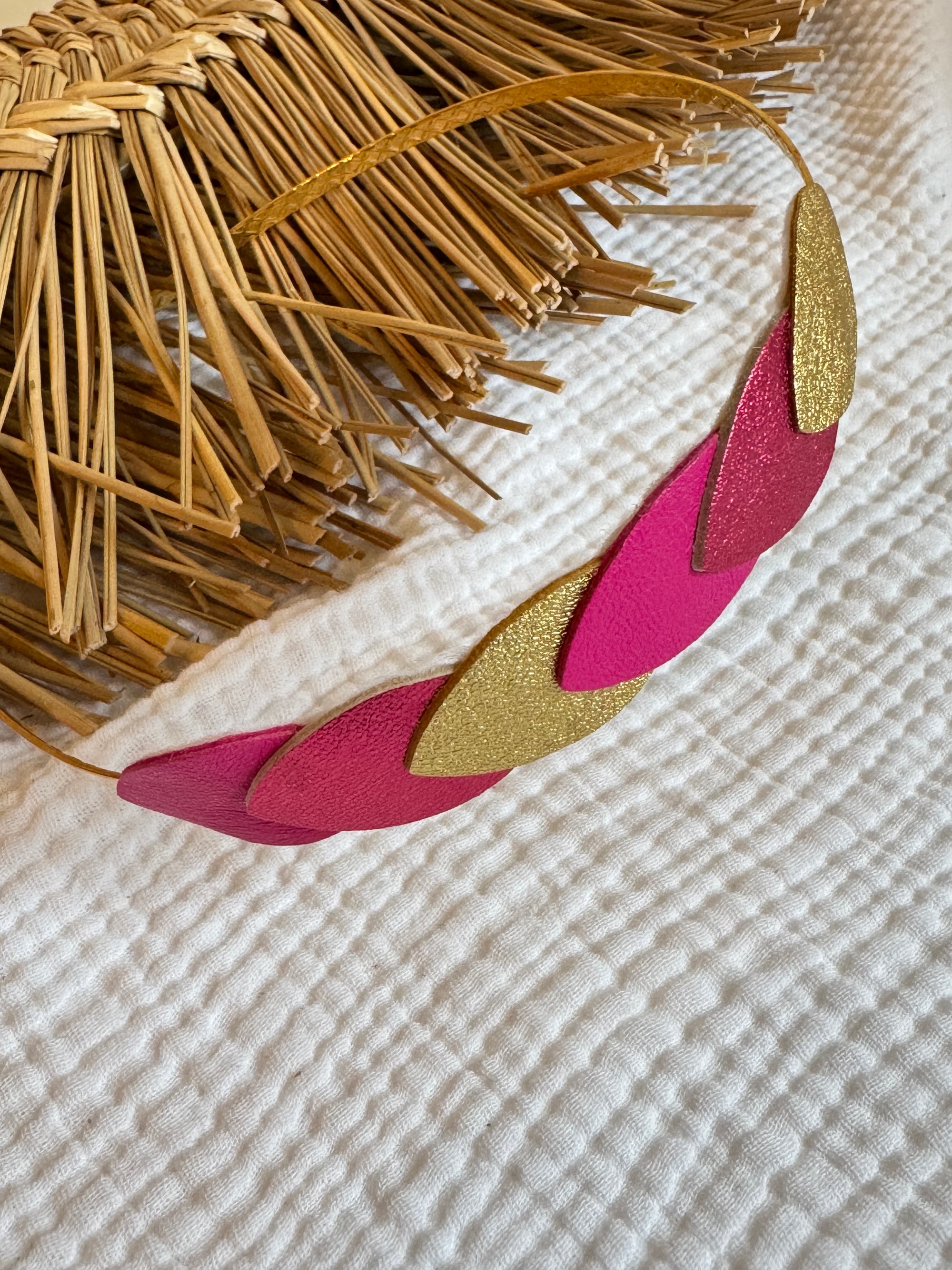 ♡ serre-tête avec des pétales de cuir dans un joli camaieu